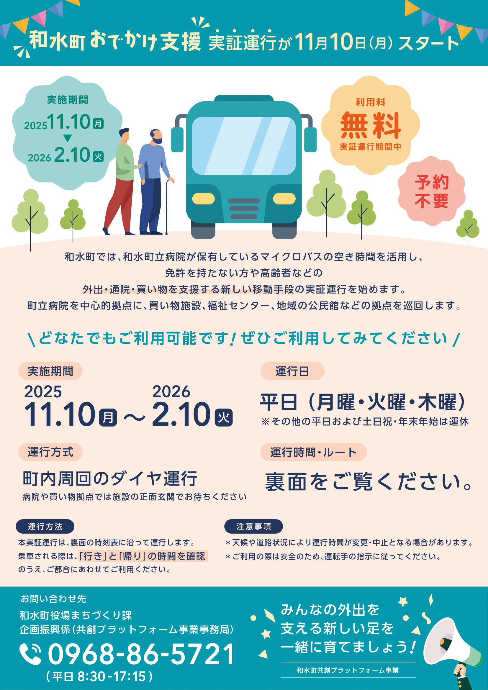 【1月13日から時刻表変更】和水町おでかけ支援実証運行について最終更新日:2026年01月07日