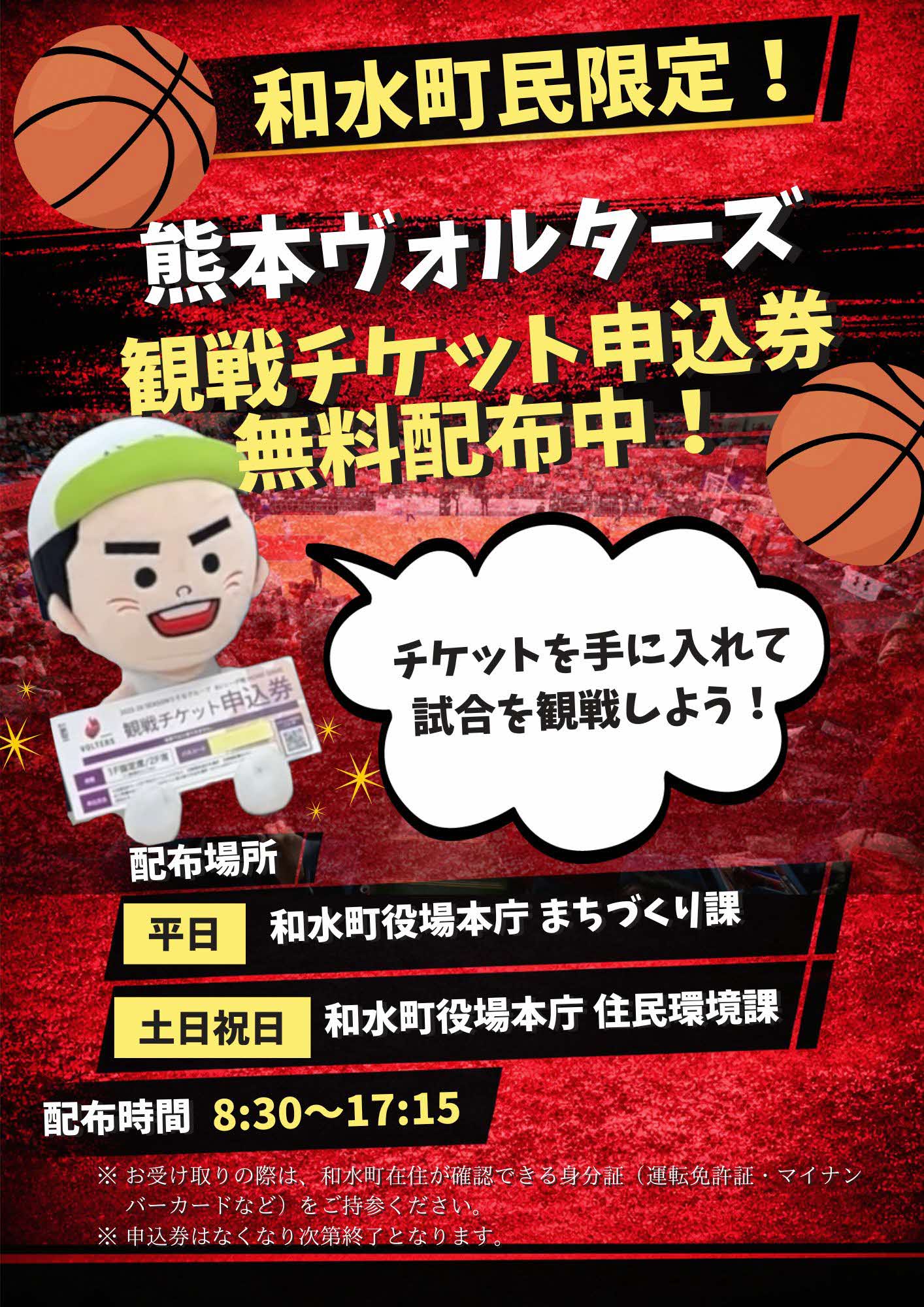 🏀熊本ヴォルターズ観戦チケット申込券を無料配布中🏀