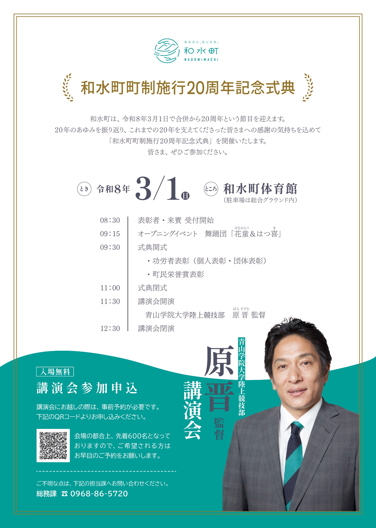 「和水町町制施行20周年記念式典」を開催します。
